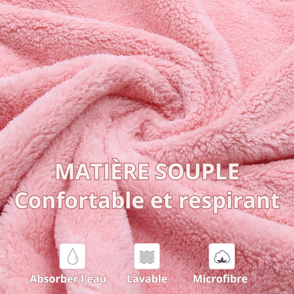 Je recommande cette serviette pour cheveux super absorbante, très facile à mettre en place après la douche.